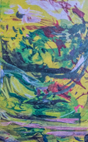 In addition to the Normandy scenes, there is a good selection of Hockney’s portraits on canvas. Painted mainly during the last year or two, many of them include objects such as tables painted so that perspective has been reversed. For example, the front of a table in a picture is painted narrower than the distant end of it.