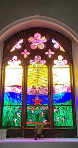 Recently, we visited the church of St Mary the Virgin in Maldon. It stands on a small hill that overlooks the mudflats and rivulets of the Chelmer River where the battle was fought. In its north wall there is a striking, colourful modern stained-glass window. Designed by Mark Angus, it was installed in 1991to commemorate the 1000th anniversary of the Battle of Maldon. It is a great addition to an otherwise unremarkable church.