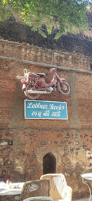 When Richard and his half sister were children, they used to be ferried around Maheshwar on the bike now adorning the cafe. The driver who took tem on the motorbike was tall (‘lambu’ in Hindustani). Over the years, he became known affectionately by the nickname ‘Labboo”. His motorbike, now attached to a wall, commemorates him.