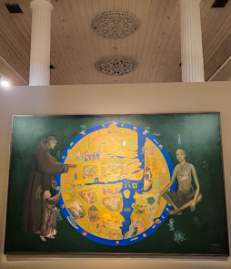 Amongst the many superb creations on display, there is a series of Mappa Mundi paintings, in which, to quote Wikipedia, Sheikh: