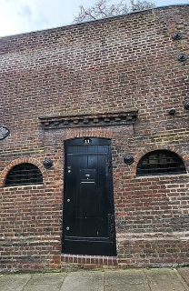 There were probably quite a few parish lock-ups in London, but now most of them have disappeared. However, if you walk along Cannon Lane in Hampstead, you will find one that has been preserved to some extent. It is within the garden wall of the grounds of Cannon Hall, which is where local magistrates held court, A plaque next to its entrance informs that the lock-up was established about 1730. Soon after the creation of the police force in 1829, the lock-house became disused, and prisoners were locked up in the Watch House that stands in Hampstead’s Holly Walk. Today, it seems as if the entrance to the former lock-house, flanked by two barred windows, is now the front door of some kind of residential accommodation.