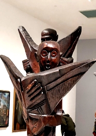 SEVEN CARVED WOODEN figures stand in a line at an exhibition in London’s Tate Modern gallery. Each of them is depicted holding something that looks like an book or a pair of wings. Their faces are all different, as are their expressions and heights. They were carved by the Nigerian artist Ben Enwonwu (1917-1994), and form part of a superb exhibition, “Nigerian Modernism”, which is showing until 10 May 2026.