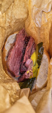 As the Beigel Bake does not offer any seating, one has to eat the generously filled beigels elsewhere. At the Brass Rail, you can sit at a comfortable table, where a waiter brings the salt beef sandwich to you. The salt beef served at Beigel Bake is much tastier than that at the Brass Rail. Unlike the latter, Beigel Bake does not put sauerkraut and cheese into the sandwich. Without those ingredients, the salt beef tastes far superior to when they are present. In addition, the beigel suits the salt beef much better than the rather soft bread used at the Brass Rail. In brief, to my taste the Beigel Bake offering is far superior in all respects to that of the Brass Rail.