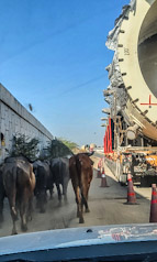 This lane offered other obstructions including large trucks and a herd of slow moving cattle. We squeezed past them and eventually rejoined the highway.
