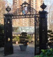 Today, little remains of Cremorne Gardens except a few street names and a small park close named Cremorne Gardens next to the river. This delightful, small open space has a paved section as well as a lawn. It is a tiny fragment of the original Cremorne Gardens but a fitting memorial to a place that provided entertainment for Londoners over many years. A couple of piers project into the river. These were originally landing stages for visitors arriving at the Gardens by river boat. Another souvenir of the heyday of the Gardens is a pair of wrought iron gates that stand in the present plot, but not in their original position, now built over. Small though it is, with its superb views of the Thames, the present Cremorne Gardens is a pleasant place to visit, within a short distance from the fashionable Kings Road.