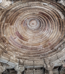The domes are usually supported by 8 pillars arranged as a regular octagon. Neighbouring pillars support horizontal lintels, which together form an octagon. The dome rests on these lintels. The internal surfaces of the domes, when seen from below, consist of a series of concentric rings that decrease in circumference as they approach the top of the dome. The stonework of the rings can be either plain or elaborately ornamented. The design of these domes and their supporting supporting pillar systems are identical to what can be seen in Indian temples built long before Islam arrived in India.