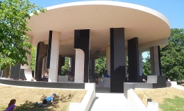 Well, maybe this was the designers’ aim, but it does not convey that concept to me. This circular, building coloured black and white, immediately conjured up in my mind images of often disused municipal structures such as bandstands and public conveniences that might have been constructed on provincial British or even South African seafronts in the 1930s to 1950s. It might have been conceived with high-minded ideas in the architects’ heads, but I felt that the structure is lacking in visual interest both in detail and in its entirety. Compared with many of the previous pavilions erected on its site, this is one of the dullest I have seen. It is a shame that the pavilion’s creators did not put more effort into its appearance than into the message(s) it is supposed to convey. To my taste, it is a disappointment but do not let me put you off: go and see it for yourself.