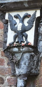 The painting at Frieze contains a gold chandelier that hangs from the ceiling. It is a decorative example, which includes an object that has interested me greatly since I was a teenager. At the top of the chandelier there is a double-headed eagle (‘DHE’). This is a bird with two heads, each on its own neck. In the painting, each of the heads is surmounted by a crown topped with a small cross. My interest in the DHE began when my fascination with Albania, whose flag contains a DHE, began in the mid-1960s. Chandeliers with DHEs appear in several other paintings by members of the Brueghel family (and their studios) in which the subject matter described above was depicted. I asked one of the gallery assistants about the DHE on the chandelier, and she had no idea about it. I was hoping that she would confirm my suspicion that the two-headed bird in the painting was related to the Holy Roman Empire and the Habsburgs, both of whose emblems included the DHE.