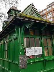 SOUTH OF KENSINGTON Gardens, just west of the Royal Garden Hotel, there is a small green hut with a pitched roof beside Kensington Road. It is one of the thirteen remaining cabmen’s shelters dotted around central London, which were established by the Cabmen’s Shelter Fund (‘CSF’) in 1875 and are still maintained by this organisation. Back in those days, cab drivers could not leave a cab stand whilst they were parked there. This made it difficult for cab drivers to obtain food and drink whilst on duty.
