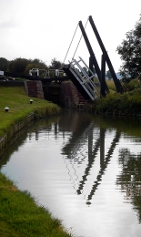 Much of the Northampton Arm is very narrow, just wide enough for passage of a single narrow boat. At regular intervals, the arm widens to allow vessels travelling in opposite directions to pass each other. Though short in length, only 4.6 miles, the Northampton Arm has seventeen separate, hand-operated locks for vessels to negotiate. The twelve of these, a flight of locks, is 1123 yards from the Gayton junction with the main canal. These twelve locks are along a stretch of canal only nine tenths of a mile long. The northernmost lock, that nearest towards Northampton, is a few yards north of a bridge carrying the M1 motorway. The locks carry the water from a bit over 300 feet above sea level nearest Gayton down to less than about 225 feet, each lock capable of lifting or lowering a vessel over 6 feet on average. Nearer Gayton, there is an old swing bridge, rather like a castle’s drawbridge. Looking at old maps, it appears that there were several more of these along the arm, but we only spotted one in the stretch between Gayton and the M1.