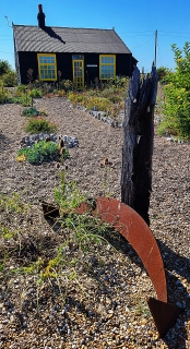 When we visited Prospect Cottage and its garden on a sunny afternoon in August (2024) there were a few other visitors admiring the garden. Entry to the cottage is generally not permitted. We were told that occasionally it can be used by artists as part of residencies arranged by Creative Folkestone. As for the garden, it seemed that no one objected to visitors looking around. We did ask permission from someone using the cottage, and she told us to go ahead. Although the road leads to Dungeness lighthouse, which is open to the public and attracts many visitors, few of those on their way to it stop at Prospect Cottage. Having seen this curious place, I can recommend it as a destination if you happen to be in east Kent.