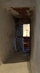 The lady, who was kindly showing us around the church, pointed out a slit in the north side of the western end of the chancel. The slit, which passes through the thick wall, is not perpendicular to the wall. It runs from the northwest to the northeast. It is what is known as a ‘squint’ or a ‘hagioscope’. These were incorporated into churches to allow worshippers a view of the high altar when their view was obstructed by the walls of the side aisles in churches where the width of the chancel was considerably less than that of the combined aisles and nave.