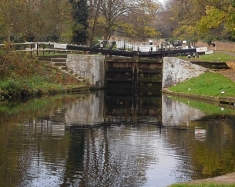 The bifurcation is about 34 feet above sea-level. From that point, the canal’s route curves leftward changing its direction from northwest to southwest, and in so doing it reaches land that is 86 feet above sea level. This curve is about 700 yards in length. To be able to move vessels between these two altitudes, there is a series of six hand-operated locks, known collectively as the Hanwell Lock Flight, an impressive sight. Each of the six locks enables a craft to negotiate about nine feet of the change in altitude.  This is slightly less than the deepest lock on the Grand Union Canal system, which is 11 feet and one inch at Denham Deep Lock.