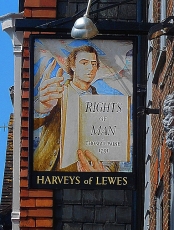 In the year 1768, the owner of Bull House, a tobacconist named Samuel Ollive, and his wife Esther, took in a lodger, who had arrived in the town. This man was an excise officer aged about 31. His name was Thomas (‘Tom’) Paine (1737-1809). 1n 1771, Paine, already a widower, married Elizabeth Ollive, daughter of Samuel and Esther. At of that time, he became involved in the Ollive’s tobacco business as well as the administrative affairs of the town of Lewes. A year later, as part of a campaign to improve the remuneration of excise officers, he published a pamphlet. “The Case of the Officers of Excise”. Tom enjoyed lively discussions and debates at the town’s ‘Headstrong Club’, which met at the White Hart Inn on the High Street. This hostelry can still be seen today.