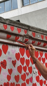 “… repaint faded hearts, re-write dedications that are being absorbed into the Wall, remove graffiti, and look after the Wall to ensure that those lost to Covid19 in the UK are remembered as people, not as a statistics.” (www.nationalcovidmemorialwall.org/)