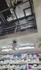 “Similar to its predecessor, which was designed by Barber & Osgerby’s interiors company Universal Design Studio, the interior follows a clinical theme inspired by Hirst’s 1992 artwork Pharmacy. Images of tablets and brightly coloured pills have been embroidered onto leather banquettes and embedded into the marble floor. Bar stools are topped with pastel-coloured pill-shaped seats. Walls are covered with a silver-coloured wall chart of pills and pharmaceutical products first produced for the original Pharmacy restaurant … A neon prescriptions sign hangs above the bar, along with a series of sculptures based on molecular structures. Windows are covered with dark-coloured translucent vinyls. Stark lighting is used to reaffirm the restaurant’s pharmaceutical theme.”