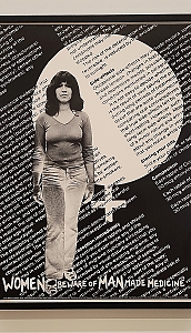 Before entering the exhibition, I was a little worried that all I would see was propaganda and other polemic material. Well, there was plenty of that kind of thing, and much of it was both interesting and often visually intriguing – sometimes quite witty. The exhibition, which is excellently curated, also includes many paintings, sculptures, videos, and other artistic items. These have mostly been created by female artists with whom I am not familiar. And all of them are both visually engaging and satisfying. Several of these were of Indian heritage, and others have ‘black’ African heritage. There are also cases containing printed material that propagated feminist ideas. Included amongst these were a few copies of the magazine Spare Rib, which I remember seeing at friends’ houses many years ago. My future wife was one its readers. Published between 1973 and 1993, its aim was to challenge the traditional roles of females (of all ages) and to explore new ways in which they could engage in society. In fact, this was the aim of many – if not all – of the works in the exhibition.
