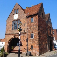 The brick town hall is unusual in that no two of its sides are equal in length and none of its corners are right angles (www.watlingtontownhall.com/history.html). Part of the ground floor is an arcade open to the outside air. This area was formerly used to hold markets. The first floor of the building served as a grammar school in the 19th century. The clock mechanism on the second floor is said to have come from the studios of the architect of St Paul’s Cathedral, Christopher Wren. This is not the only timepiece on the outside of the building. The other is a sundial, which has been gilded with 24 carat gold. The town hall was extended in the later 17th or early 18th century (https://britishlistedbuildings.co.uk/101369012-town-hall-watlington#.YH28eehKhPY) and was restored faithfully in the 20th century. Currently, the first-floor room, the former school, and beneath it, the under croft, are available for hire for social and other functions.