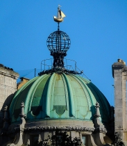MANY ROOFS IN FUNCHAL are covered with terracotta tiles. Quite a few of these roofs have small sculptures on their corners. Many of them depict heads, birds, and scrolls ( leaves?) I have no idea why these things are added to the roofs.