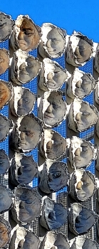 At first sight, the sculpture looks like a rectangular box-like framework covered with white ovoid shells, rather like halves of easter eggs. On closer examination, these shapes look like the internal surfaces of moulds taken from faces. Indeed, that is what they are. As an article on Wikipedia explained:
