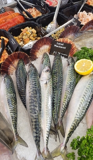 Pengellys was established in 1946. The friendly man, who served us, explained that because the firm was started so long ago, all of the seafood (except the salmon) sold in the shop is only a few hours old. Pengellys are able to buy their seafood directly from the fishing boats that dock in Looe. Other fishmongers, which were established more recently, are unable to do this – they have to buy their stock from wholesalers in Newlyn and/or Plymouth. Therefore, the seafood sold by Pengellys has spent less time travelling between ship and shop than that sold at other fishmongers. He told us that the mackerel fillets, which we purchased, had been caught less than two hours before we entered the shop. He explained that one could tell how fresh they were by the green sheen on the skin. This tends to fade the greater the time since the fish was caught. We purchased mackerel and plaice fillets, as well as scallops and samphire. Each of these items were as fresh as fresh can be, and were delicious when fried briefly in butter. Pengellys have certainly caught us as customers – hook, line, and sinker.