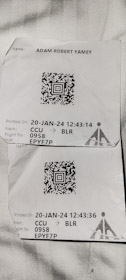 An app exists for DijiYatra, but we did not have this on our telephones. Looking perplexed, an airport official working for our airline, Indigo, led us to some electronic terminals. A man standing by it entered our PNR code, and took pictures of our faces. Following thus we were each handed small flimsy squares of paper bearing our names, flight details and a QR code. We were directed to a policeman standing nearby.