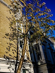 Even when the sun is not shining, this leaning tree in London’s Kensington Square is interesting enough from the visual point of view. It is amazing how much more entrancing and intriguing the scene becomes when the sun causes the tree to cast a shadow.