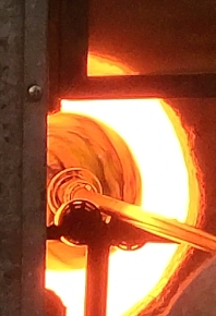 In addition to displaying fine works of art made with glass, visitors to the gallery can watch the glass blowers at work. This is fascinating to see. When we visited yesterday, the 16th of February 2024, there was a group of young children watching the glass blowers at work. A gentleman was patiently explaining what the glass blowers were doing and how they were achieving the exquisite multicoloured vase they were making. It was only when I got home that I realised that the person explaining was none other than Peter Layton.