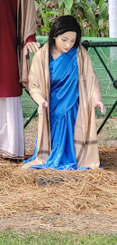 This beautifully made ensemble illustrating happenings in Bethlehem, where there was no room at the inn, is lacking one person. There was no baby Jesus to be seen. The model of Mary seems to be looking adorably at an empty patch of ground. I wondered whether someone had stolen the model of Jesus. We asked a gardener what had happened to baby Jesus. He replied: “It’s Christmas Eve. Jesus has not been born yet. He’ll come tonight.
