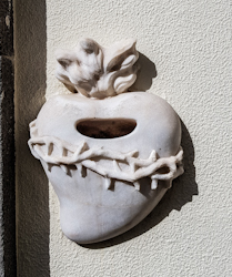 Our next attempt was altogether easier. On the way downhill, we passes a religious institution: a seminary called Colégio Missionário Sagrado Coração. Being Sunday, the gates were open for people who wanted to attend the Sunday mass. The institution is named in honour of the Sacred Heart. On either side of the door leading into the simply decorated chapel, there are car ings of hearts encircled by thorns.