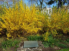 The memorial stone celebrates the botanist and horticulturalist William Forsyth (1737-1804). A founding member of The Royal Horticultural Society (founded 1804), he was also the Curator of The Chelsea Physic Garden (from 1771) and Superintendent of various royal gardens including those of Kensington Palace (from 1784). The plant genus Forsythia, a member of the olive family (Oleaceae), was named in his honour.