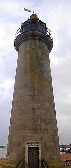 The tower, about 39 feet high, is made from blocks of limestone. The lamp housing topped with a weathervane mounted on a perforated, spherical base. It was rotating very keenly when I saw it on the second day of Storm Eunice (20th of February 2022). The weathervane is above the lamp housing that has and polygonal roof. At each corner of this, there a metal sculpture depicting the head of a fish with its mouth open.