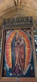 According to the guidebook we obtained in the church at Long Crendon, the three hare/rabbit motif is only seen in a few places in Britain (including 12 of the Stannary villages in Devon and Cornwall, Long Melford, Lavenham, and Chester Cathedral). Also, it stated that it can be seen: