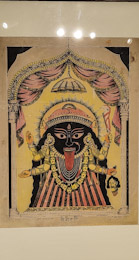 During my visits to India, I have seen plenty of paintings by Bengali artists who incorporated non-Indian artistic styles into their creations, but I cannot remember having seen such a large collection of Bengali paintings and other works in vernacular styles derived more from tradition than from outside influences. Most, but not all, of the artworks depicted Hindu religious subject matter. Many of the paintings were by artists I had never heard of, or were by unidentified painters. The well-labelled exhibits, which were beautifully displayed, were refreshing eye-openers.