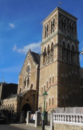 In 1862, the Vicar of St Mary Abbots, the parish church of Kensington arranged to break up his huge parish into smaller units, one of which became the ecclesiastical district of St George. John Bennett, a local builder, financed the construction of a church to replace the iron structure. The first stone of the present church, which can accommodate 1500 people, was laid in 1864. Its architect was Enoch Keeling (1837-1886). The building he designed is a rare example of ‘continental gothic’, also known as ‘Eclectic Gothic’. This style makes use of brick and stonework of various colours, both externally and internally. Its exterior gives an Italianesque impression. This is especially the case when you look at the prominent bell tower at the southeast corner of the church.