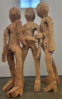 The works being shown at the Serpentine are all made of wood. They were created between 2011 and 2015 as models (maquettes) for finished works, and as such were not originally intended for public display. The wood has a rough finish and is pitted with many saw marks. After making preliminary drawings, some of which are displayed at the exhibition, Baselitz used axes, chisels, and chainsaws to fashion huge bits of timber into intriguing sculptural forms. These works are beautifully displayed in the various spaces of the gallery.