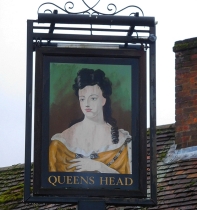 The Queens Head was built in the 17th century and, maybe, earlier, but has had much later work done to it (https://historicengland.org.uk/listing/the-list/list-entry/1102874). The pub sign has the portrait of a woman’s head. The lady depicted has long black hair and is wearing a garment that exposes her neck and upper chest but not her cleavage. One long ringlet of her hair, which ends in a helical coil, is draped over the front of her left shoulder, and her face is looking slightly towards her right. The portrayal on the pub sign resembles that of Queen Anne (reigned 1702-1714) found in many better painted pictures. This might not be accidental on a pub that existed long before Anne was on the throne. For, Lady Sarah Churchill, John’s wife, was a court favourite of Queen Anne. Incidentally, it is one of three pubs in this tiny village.