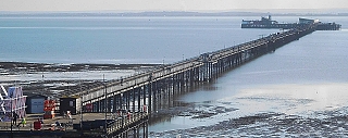 Southend Pier is the longest pleasure pier in the world. It is 1.34 miles (2.16 kilometres) in length. The present pier, which replaced an earlier wooden one built in the early 1830s, was completed in the late 1880s. it was opened to the public in 1889. At about this time, the single-track railway running along it was also ready for use. It was extended by 1898. The trains were then electrically operated. In 1978, the electric railway was closed. By 1986, it had been re-opened using trains that were driven by diesel engines. It was on one of these that we took a return trip this February.