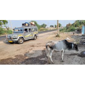 Although the middle seating had been booked for my wife and me, Lopa invited one of the three passengers who had squeezed in the front seat next to the driver to join us. He turned out to be a friendly chap. He and his friends were returning home from several days of a religious pilgrimage. Our new companion was a trader in rice, sugar, etc. He bought commodities and sold them for export. During our journey, he received a telephone call. He told us that soon after getting home, he had to go to Bombay for some urgent work. He and his business partner would have to drive for 11 hours through the night to reach Bombay from near Mandvi.