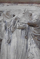 The answer is that in 1643, Parliamentary Commissioners visited the church in Stoke by Nayland and destroyed 100 religious images and 7 funerary items. Part of this over-zealous iconoclastic behaviour was the removal of the four hands of the two women on Lady Anne’s monument, as well as those of the recumbent figure of the deceased. All the hands of females on the monument were removed but those of the kneeling male figure were left untouched. Apparently, the female hands were removed because the Commissioners considered them to have been in “a superstitious attitude of prayer”, whatever that meant during the Reformation.