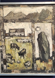 This painting on display at Sotheby’s in New Bond Street was created by Sir John Kyffin Williams (1918-2006). He was born in Wales on the island of Anglesey.