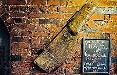 West Drayton’s parish church of St Martin was first mentioned in writing in 1181. The present building, with a flint covered exterior and a bell tower topped with a small cupola, mainly dates from the 15th century. Whereas most of the building is 15th century, at least one part of it, a two-arched piscina in the southeast corner, is 13th century. Currently, the church is entered through a modern doorway at the east end of the south wall instead of the older south entrance near the west end of the southern wall. On entering the church, I felt immediately disoriented. This is because, as I realised quickly, the church is arranged back to front. The high altar is at the west end of the church almost at the base of the bell tower and the pews face in that direction. Some years ago, the altar was moved from the chancel, where it had been for many centuries, to the western end of the nave. The reason for this, the vicar and her husband told me, was that it was done so that nobody in the congregation would have a restricted view of the altar during services. However, the attractively carved 15th century stone font stands where it was before the position of the altar was reversed: in the southwest corner of the nave. Another curiosity in the church is the hanging pyx suspended above the high altar. This gothic revival style container (based on the appearance of a mediaeval pyx in a church in Suffolk), which holds the sacrament and can be lowered during services, was designed by Andrew Low, manufactured at Pinewood (film) Studios, and placed in St Martins in 1975.