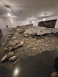 The artist began experimenting with using explosives in his works on materials such as canvas and paper in the early 1980s in Quanzhou. Occasionally, the work in progress would ignite, and the fire had to be smothered to save the artwork. The works on display at White Cube were created after 2015, mainly in the 2020s. By now, he has refined his technique so that wholescale conflagration does not happen. However, as a gallery assistant told us, if you look carefully at some of the works, small burn marks can be found here and there.